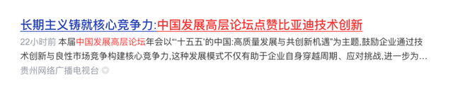 关键还不是压过的问题,就在最近召开的“中国发展高层论坛上”,高层还专门拿比亚迪举例: